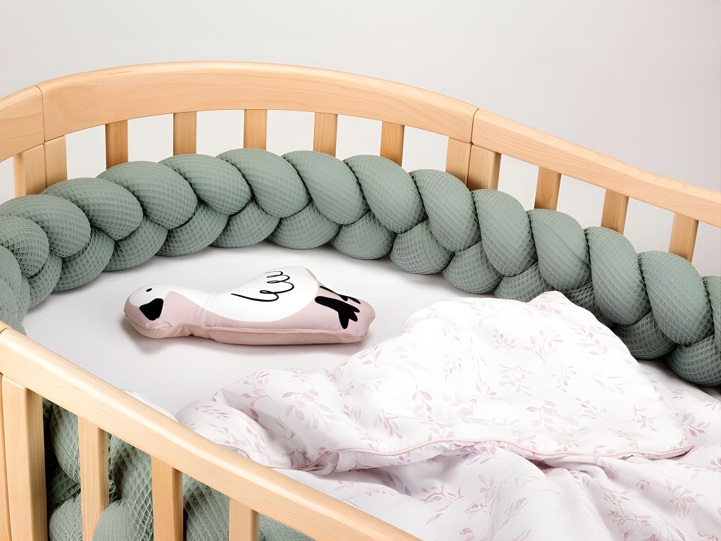 Aveți nevoie de un protector pentru pătuțul copilului? Codița verde pentru pătuț are o lungime de 210 cm și o înălțime de aproximativ 18 cm, pentru a preveni lovirea copilului de gratiile de lemn ale pătuțului. Dacă puneți codița într-un pătuț mai mic, de formă pătrată, va acoperi până la 3/4 din pătuț. În cazul unui pătuț mai mare, o puteți așeza, de exemplu, în formă de U în jurul capului bebelușului. Codița împletită pentru pătuț are un design mai interesant, dar servește la fel de bine ca un protector clasic. Codița pentru pătuț protejează în mod fiabil copilul care începe să se miște mai mult în pătuț. Avem disponibile mai multe culori.