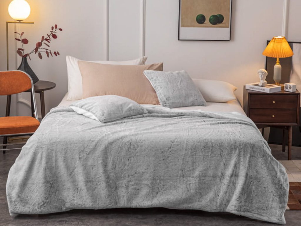 Pătura cu blană Vela cu două fețe va deveni un companion excelent în serile reci. Va completa cu gust casa dumneavoastră ca o cuvertură sau pătură pentru pat. Structura sa moale cu imitație de blană de iepure o veți îndrăgi cu siguranță de la prima vedere. Nu recomandăm călcarea, albirea sau curățarea chimică.