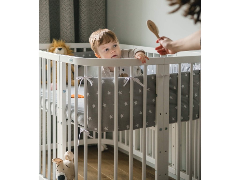 La patul pentru copii 7 în 1, puteți achiziționa suplimentar leagăn pentru bebeluș, cutie de depozitare sau extensie pentru pat.