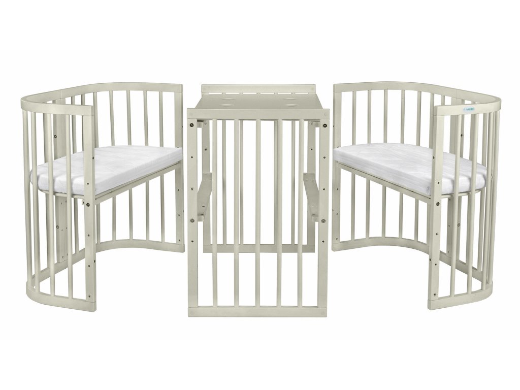 Pe măsură ce copilul crește, are nevoie de mai mult spațiu. Din acest motiv, de la aproximativ 6 până la 36 de luni, se recomandă unirea tuturor pieselor într-un pătuț mai mare. Când coborâți grilajul în poziția cea mai joasă, veți obține un țarc de joacă sau un pătuț jos în care copilul poate intra singur. Când copilul crește din pătuț, îl puteți demonta din nou în trei părți, două scaune și o masă la care copiii se pot juca, desena sau mânca.