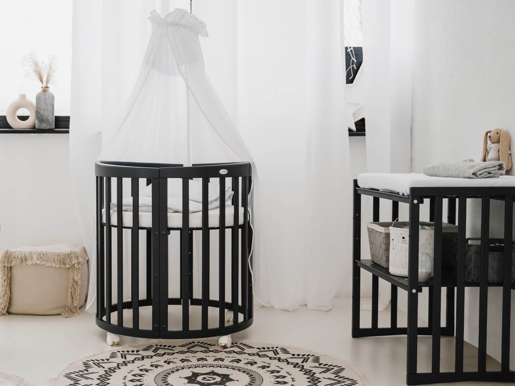 Pătuț de design extensibil 7 în 1 într-o culoare grafit pronunțată. Pătuțul rotund extensibil crește treptat împreună cu copilul. Dacă aveți nevoie de un pătuț pentru copii pentru câțiva ani, pe care îl puteți extinde și ulterior transforma în două scaune și o masă, pătuțul extensibil este o soluție potrivită și mai ales pe termen lung. Pătuțul oval extensibil va putea fi folosit de copiii dumneavoastră în diverse moduri până la vârsta de 10 ani. Imediat după nașterea bebelușului, asamblați primul pătuț adițional lângă patul părinților sau un pătuț mic rotund cu masă de schimbat. Pătuțul este disponibil în oferta noastră în mai multe culori.