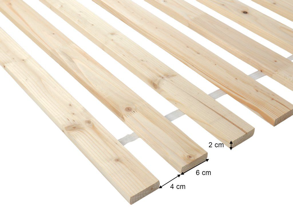 Formatul mai mare 160x200 cm în gama Trevio aduce confortul complet al unui pat dublu păstrând în același timp construcția simplă și solidă a lagărelor. Somiera este realizată din lemn de molid în finisaj natural nelăcuit, care evidențiază structura sa naturală și, în același timp, oferă suficientă rezistență pentru utilizarea zilnică. Lemnele sunt netezite și legate cu o bandă textilă care ține întreaga construcție împreună și facilitează manevrarea la introducerea în cadrul patului. Somiera este proiectată astfel încât să asigure distribuirea uniformă a sarcinii pentru saltele cu arcuri, cu pachete de arcuri și de spumă și, în același timp, să sprijine ventilarea lor naturală. Circulația corespunzătoare a aerului ajută la menținerea saltelei mai uscate, limitând astfel umiditatea, mucegaiul și acarienii.